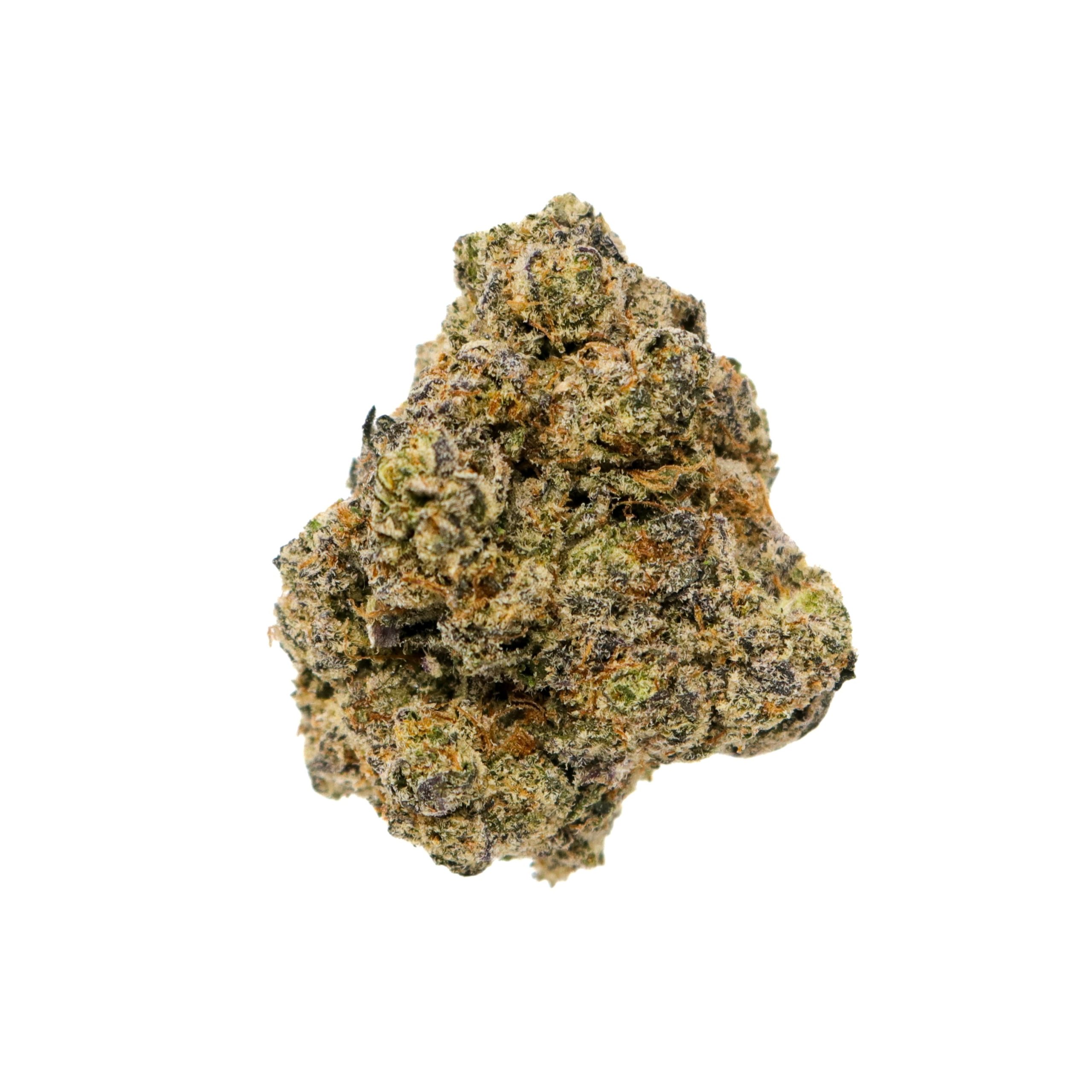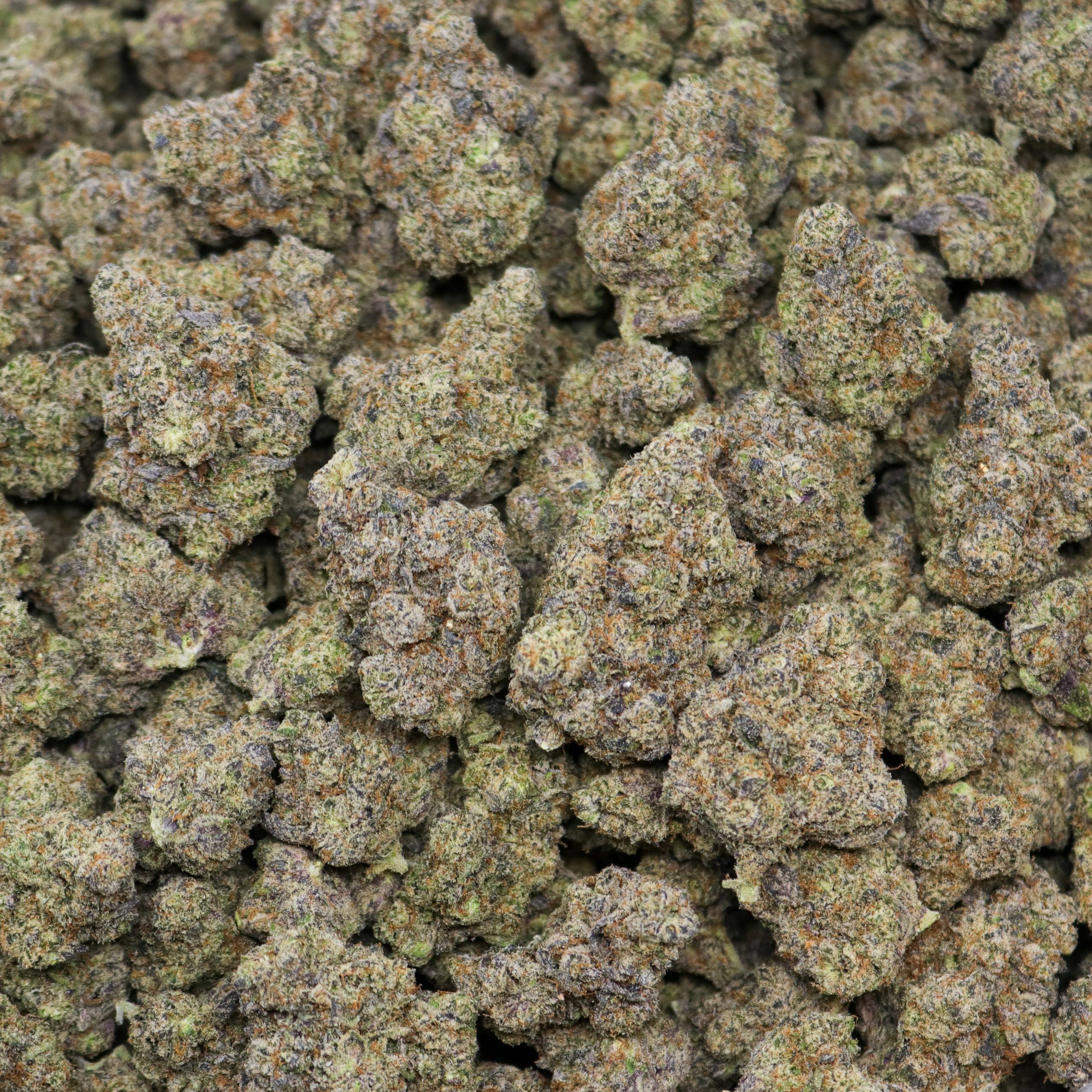 The aroma is pungent and layered—woody pine, sweet fruit, and light spice combine with a slightly gassy undertone. When broken apart, the buds release deeper notes of kush, earth, and sugary berries, giving it a strong and memorable scent.