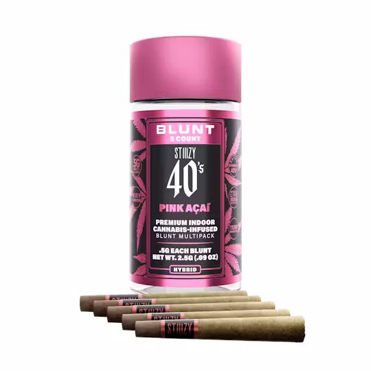 Stiiizy 40’s Infused Mini Blunts – Biscotti (2.5g) deliver a smooth and potent indica-dominant experience in a convenient pack of five 0.5g infused mini blunts. Crafted with premium Biscotti flower, these pre-rolls are infused with high-quality cannabis oil and coated in kief for an extra boost of potency and flavor.