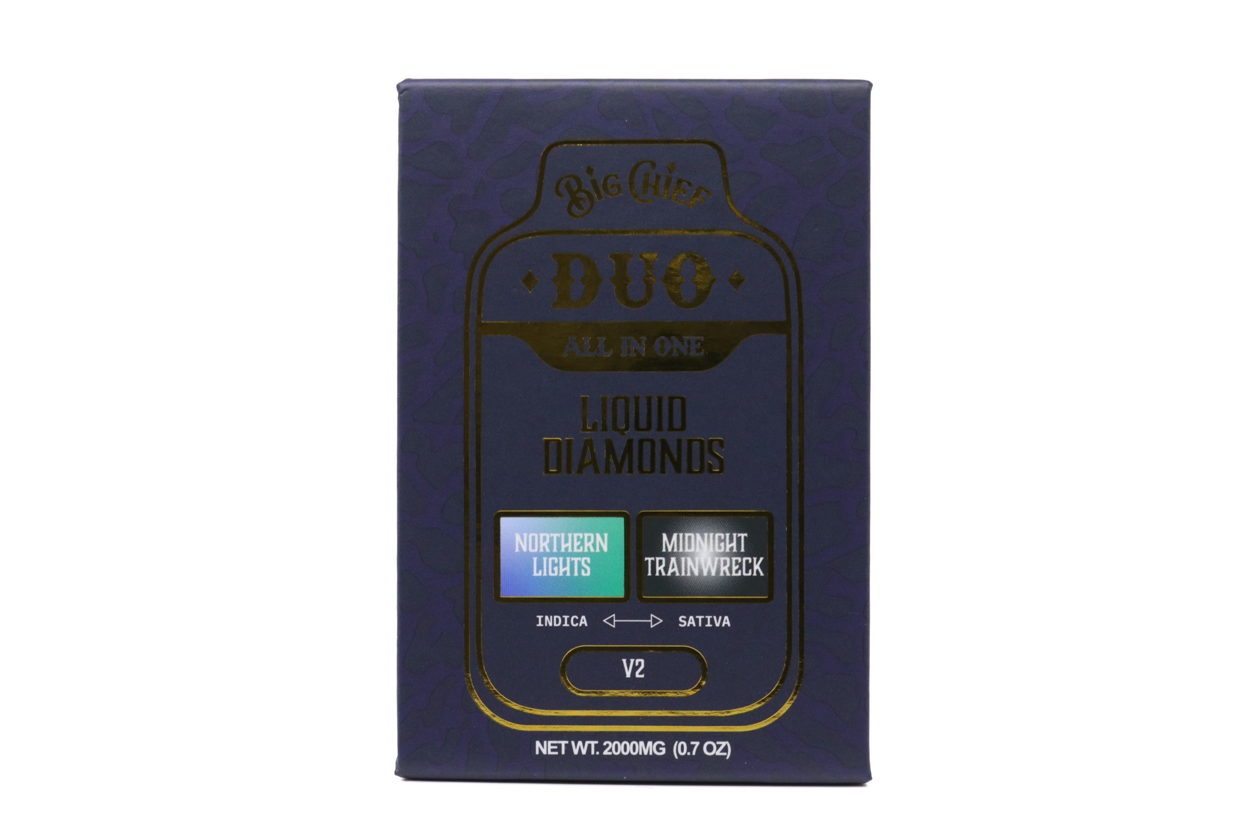 Unwind or power through the night with Big Chief Duo All-in-One 2g – Northern Lights x Midnight Trainwreck, a bold dual-chamber disposable vape that pairs deep relaxation with electrifying intensity. This versatile combo delivers two contrasting yet complementary experiences in one sleek, easy-to-use device.