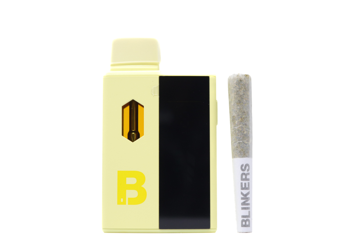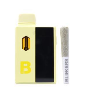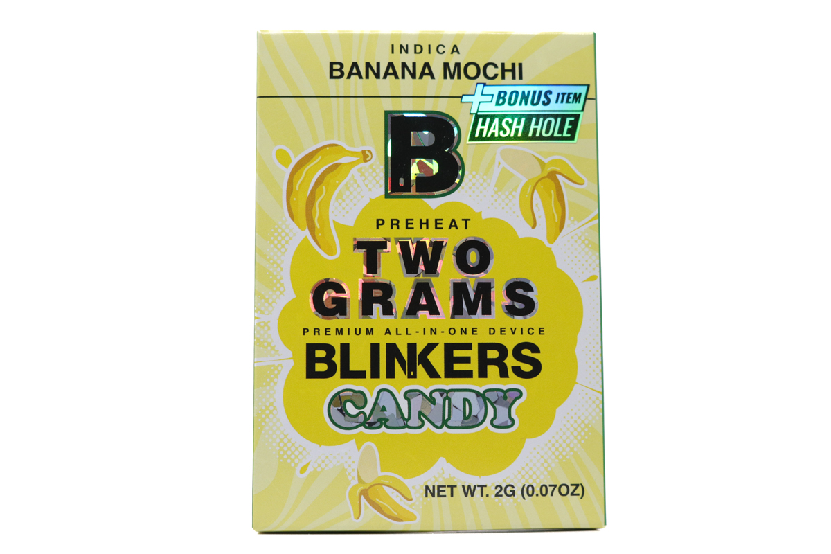 Experience a relaxing and flavorful journey with Blinkers Dispo (2g) + Hash Hole – Banana Mochi. The 2g disposable is Indica, delivering smooth, calming effects, while the included 0.5g Hash Hole preroll adds a potent twist—its strain is unspecified, offering a unique experience each time.