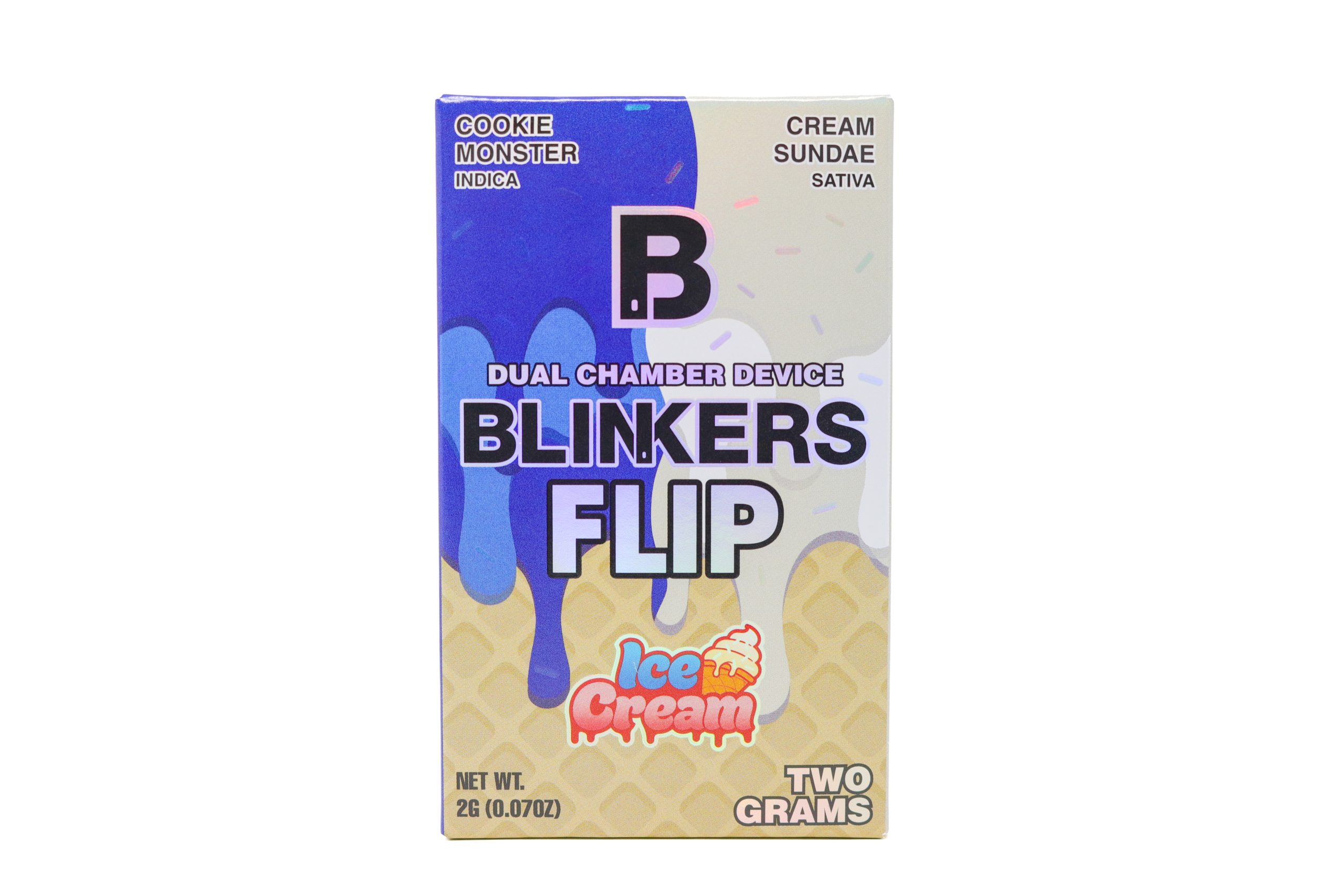 Crafted with premium THC-A distillate and strain-specific terpenes, this 2-gram disposable delivers bold flavor, smooth vapor, and consistent potency throughout the device. The innovative Blinkers Flip dual-chamber design allows you to switch between strains instantly or combine both for a perfectly blended dessert-style experience whenever the mood hits.