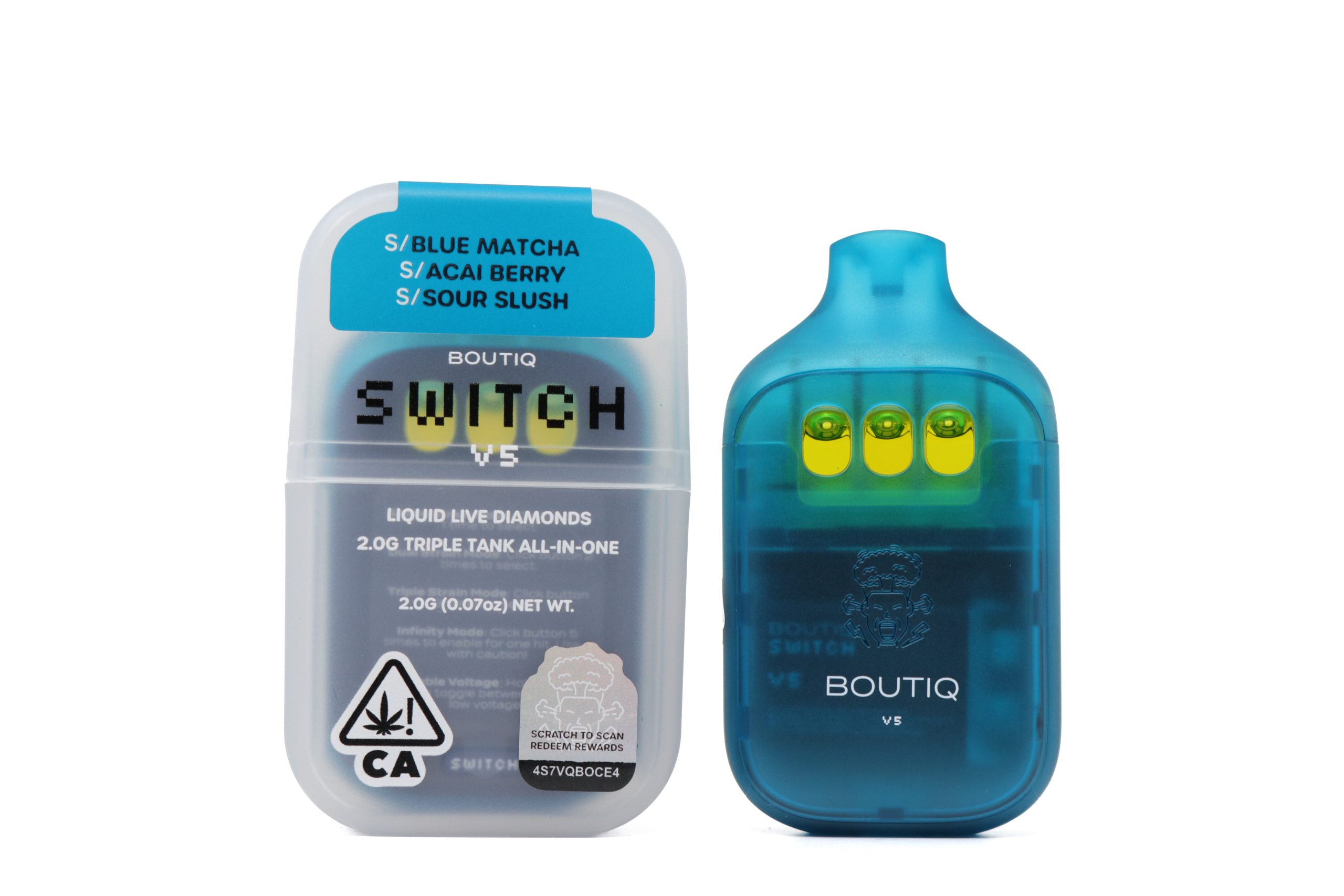 Experience full flavor flexibility with the Boutiq Switch V5 (2g) – Blue Matcha x Acai Berry x Sour Slush, a triple-chamber disposable vape designed for users who want complete control over their session. Switch effortlessly between strains or blend all three for a customized, layered flavor and effect profile.
