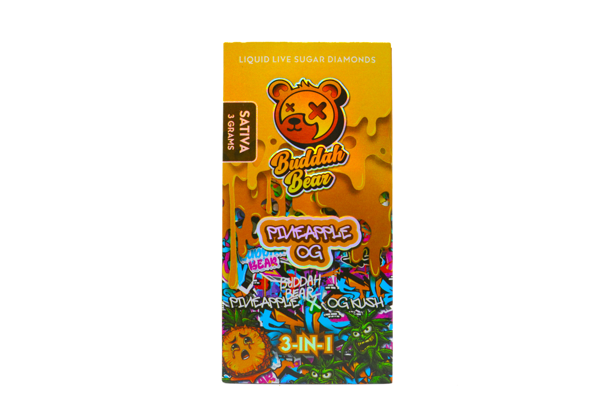 Elevate your session with the Buddah Bear Sugar Diamond Dispo (3g) – Pineapple OG, a premium 3-gram sativa disposable crafted for flavor, potency, and convenience. Pineapple OG delivers tropical pineapple sweetness layered with classic OG earthiness, creating a smooth, flavorful, and well-rounded vaping experience.