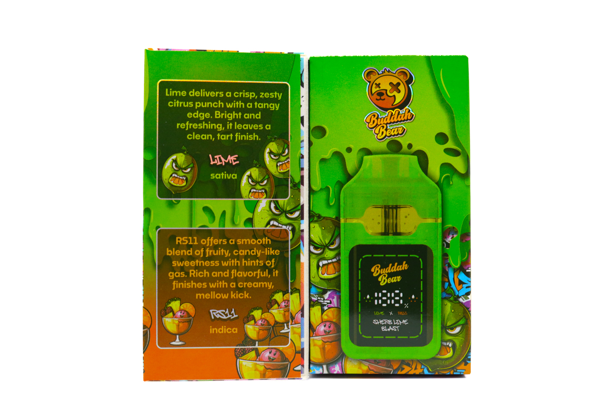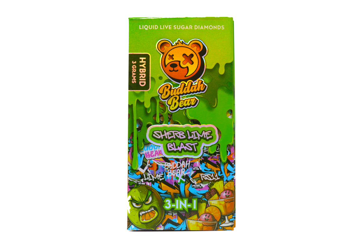 Elevate your session with the Buddah Bear Sugar Diamond Dispo (3g) – Sherb Lime Blast, a premium 3-gram hybrid disposable crafted for flavor, potency, and convenience. Sherb Lime Blast combines tangy, zesty lime with sweet sherbet undertones, delivering a bright, refreshing, and flavorful vaping experience.