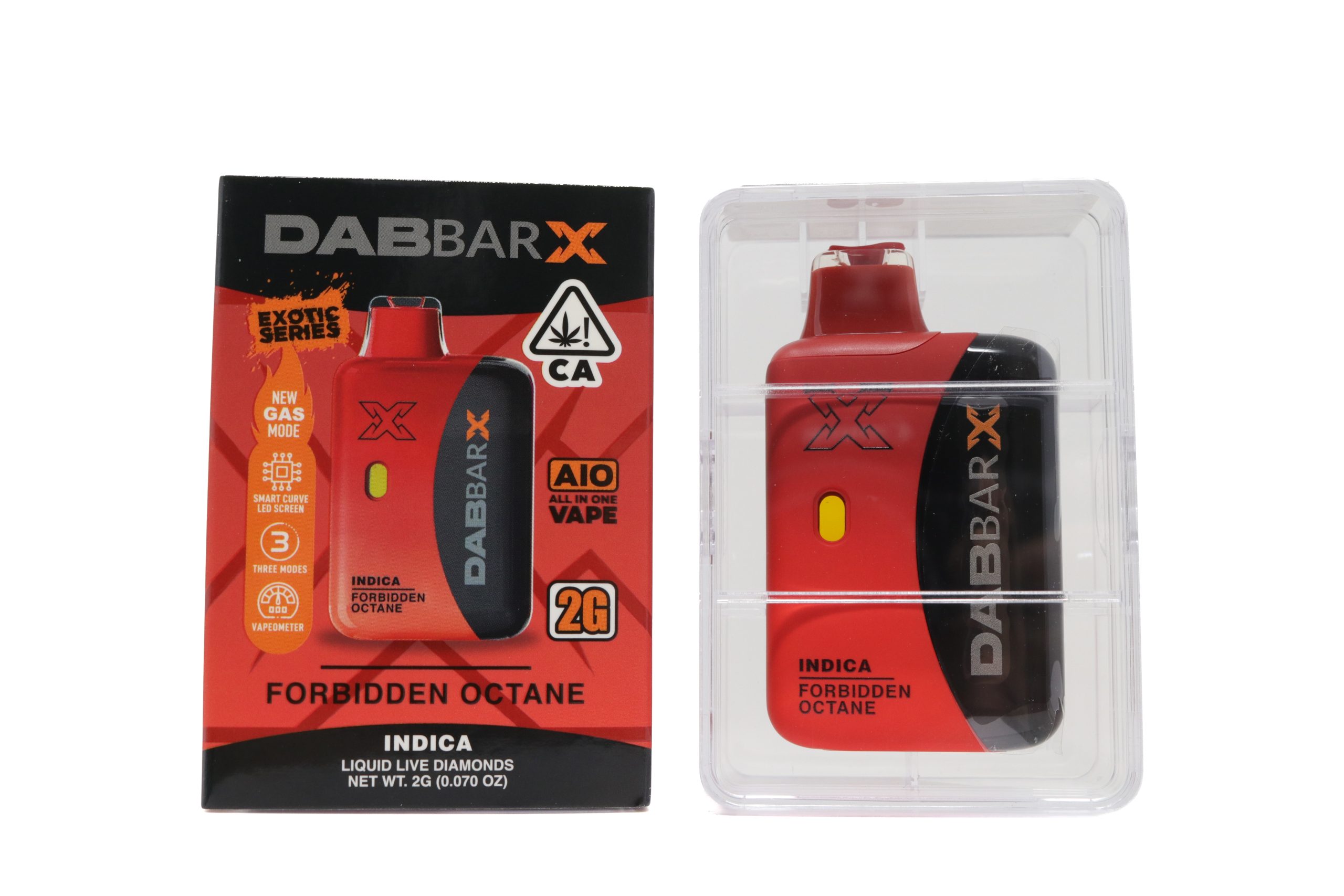 Forbidden Octane is a powerful indica-leaning strain featured in Dab Bar X’s high-performance AIO disposable, delivering a bold, smooth, and deeply relaxing vaping experience. Known for its intense fuel-forward flavor and heavy-hitting effects, Forbidden Octane is ideal for unwinding, melting stress away, and sinking into full-body relaxation.