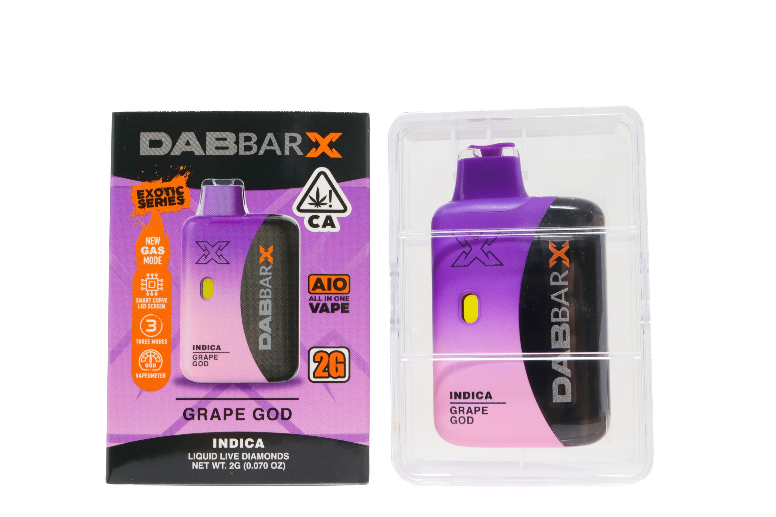 Grape God is a flavorful indica-leaning strain available in Dab Bar X’s high-performance AIO disposable, delivering a smooth, sweet, and deeply relaxing vaping experience. Known for its bold grape-forward flavor and calming effects, Grape God is ideal for unwinding, easing stress, and enjoying a mellow, body-soothing high.