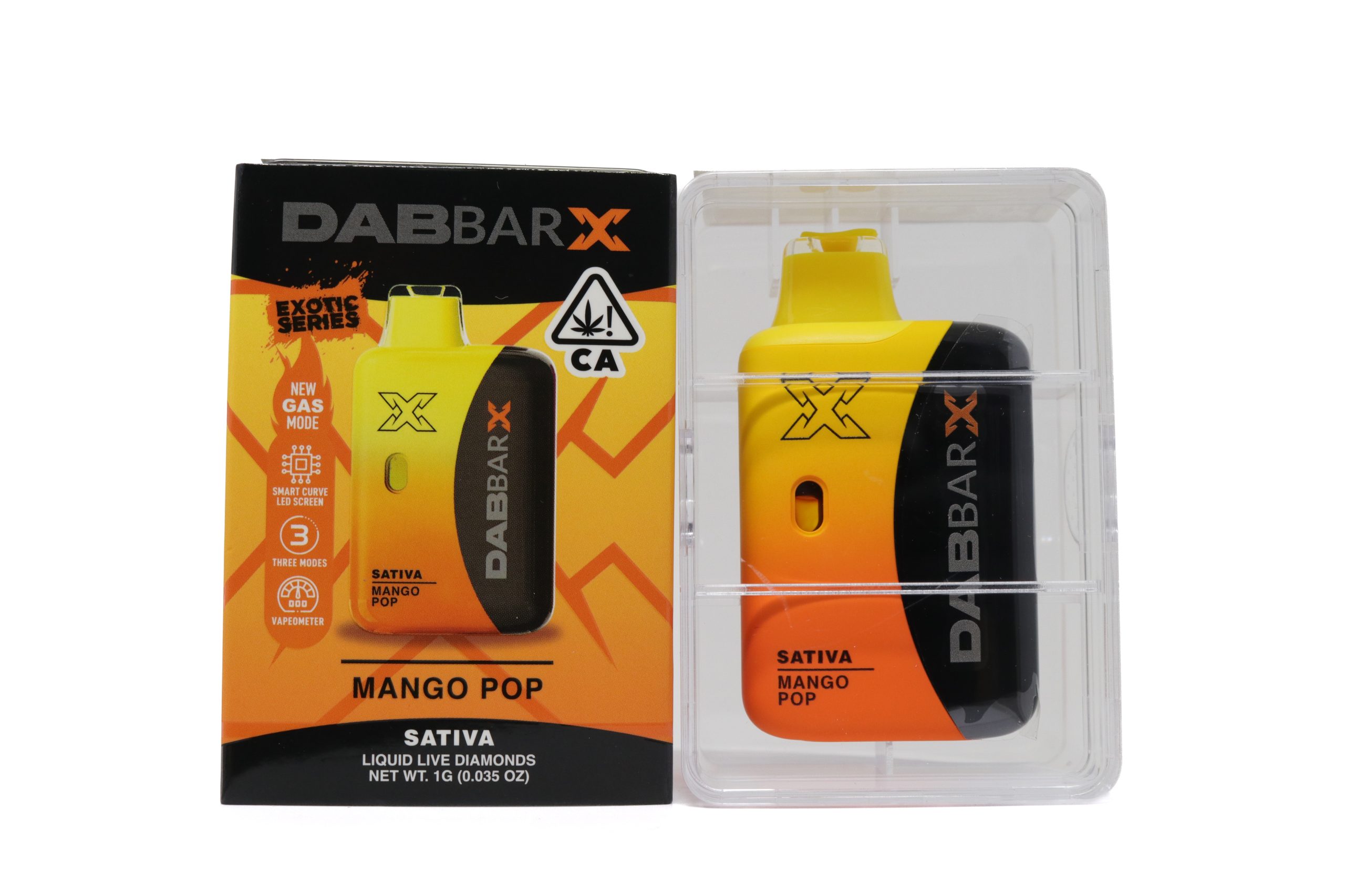 Mango Pop is a vibrant sativa available in Dab Bar X’s premium disposable, delivering a bright, uplifting, and energizing experience. Known for its sweet tropical mango flavor and smooth, flavorful vapor, Mango Pop is perfect for boosting mood, creativity, and focus during the day.