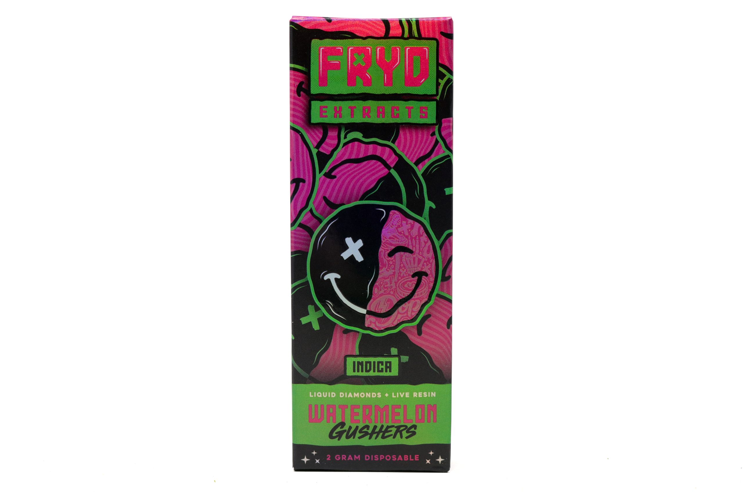 Experience premium potency and juicy candy flavor with Fryd Watermelon Gushers 2g Hash Hole Disposable. Crafted using high-quality cannabis extract infused with live resin and liquid diamonds, this device delivers an elevated experience designed for seasoned consumers seeking maximum strength and flavor.
