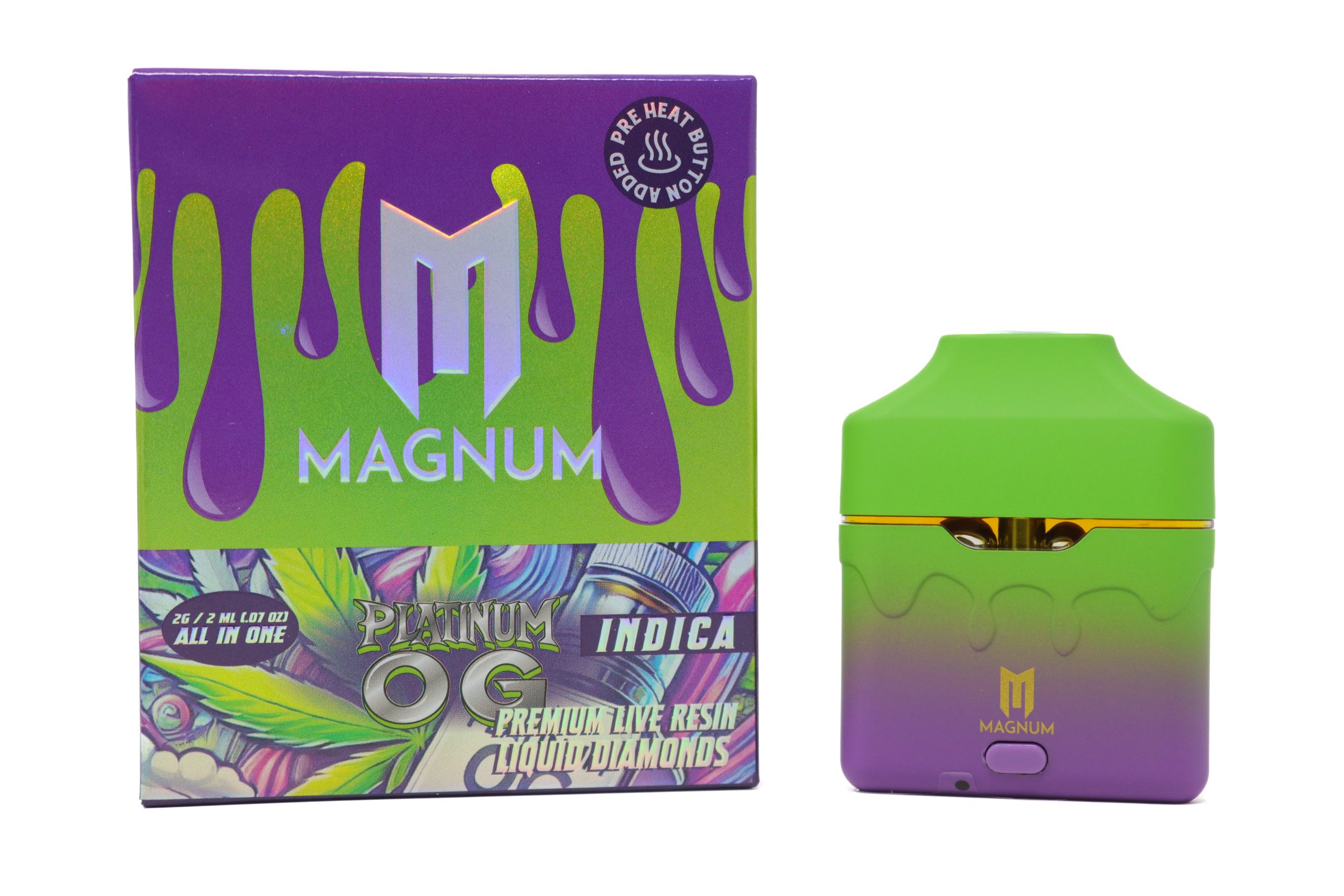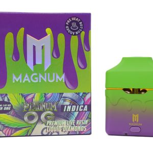 Settle into deep relaxation with the Magnum Dispo (2g) – Platinum OG (Indica), a premium disposable vape designed for rich flavor and soothing effects. Packed with 2 grams of high‑quality extract in a sleek, all‑in‑one device, this vape is pre‑filled and draw‑activated — no buttons, refills, or charging required.