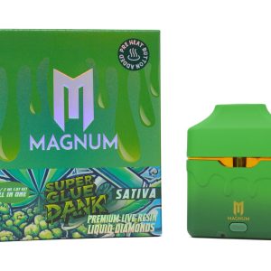 Power up your session with the Magnum Dispo (2g) – Super Glue Dank (Sativa), a bold and flavorful disposable vape crafted for uplifting energy and smooth performance. Featuring 2 grams of premium extract in a sleek, all‑in‑one device, it’s pre‑filled and draw‑activated for effortless use — no buttons, refills, or charging required.