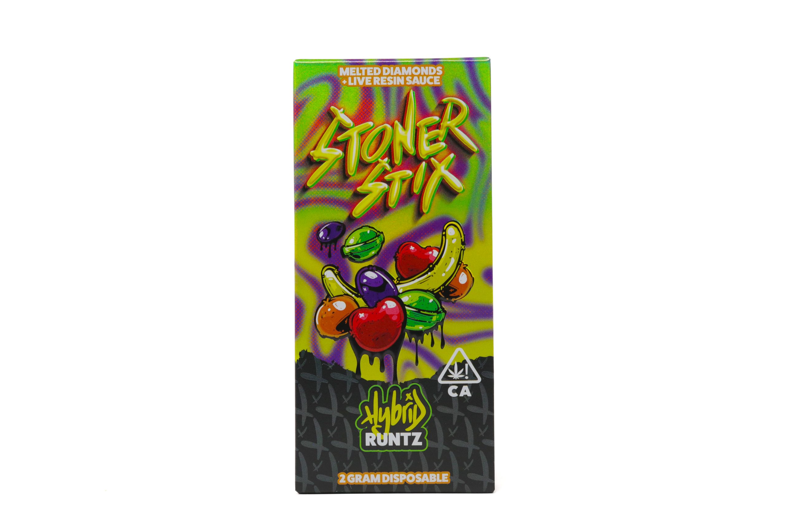 Stoner Stix Dispo (2g) – Runtz is a hybrid disposable vape with sweet, fruity tropical and berry flavors. Enjoy balanced uplifting and relaxing effects in a sleek, pre‑filled, draw‑activated device — perfect for flavorful, versatile sessions.