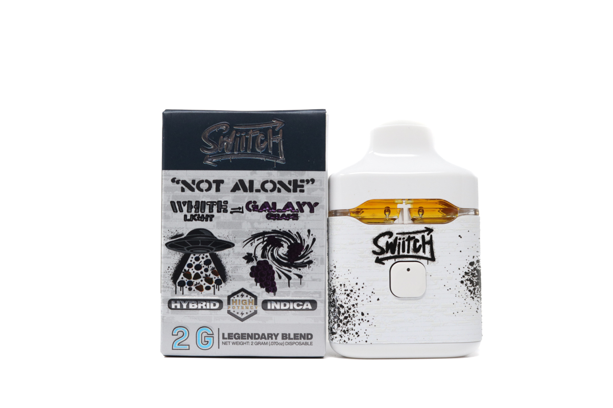 Elevate your session with the Swiitch Disposable (2g) – White Light x Galaxy Grape, a premium 2-gram dual-strain disposable crafted for flavor, potency, and convenience. This combo pairs White Light (hybrid), offering a balanced mix of uplifting and relaxing effects, with Galaxy Grape (indica), delivering deep, calming relaxation. Together, they provide a smooth, versatile, and flavorful vaping experience.
